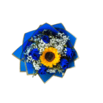 6 HERMOSAS ROSAS AZULES Y 1 GIRASOL