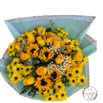 Hermoso ramo de con girasol + 5 tallos de astromelias blancas + follaje de eucalitus