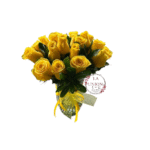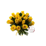 18 HERMOSAS ROSAS AMARILLAS CON FOLLAJE VERDE EN JARRON DE VIDRIO