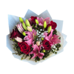 hermoso ramo de mano con 6 rosas y 4 lilium