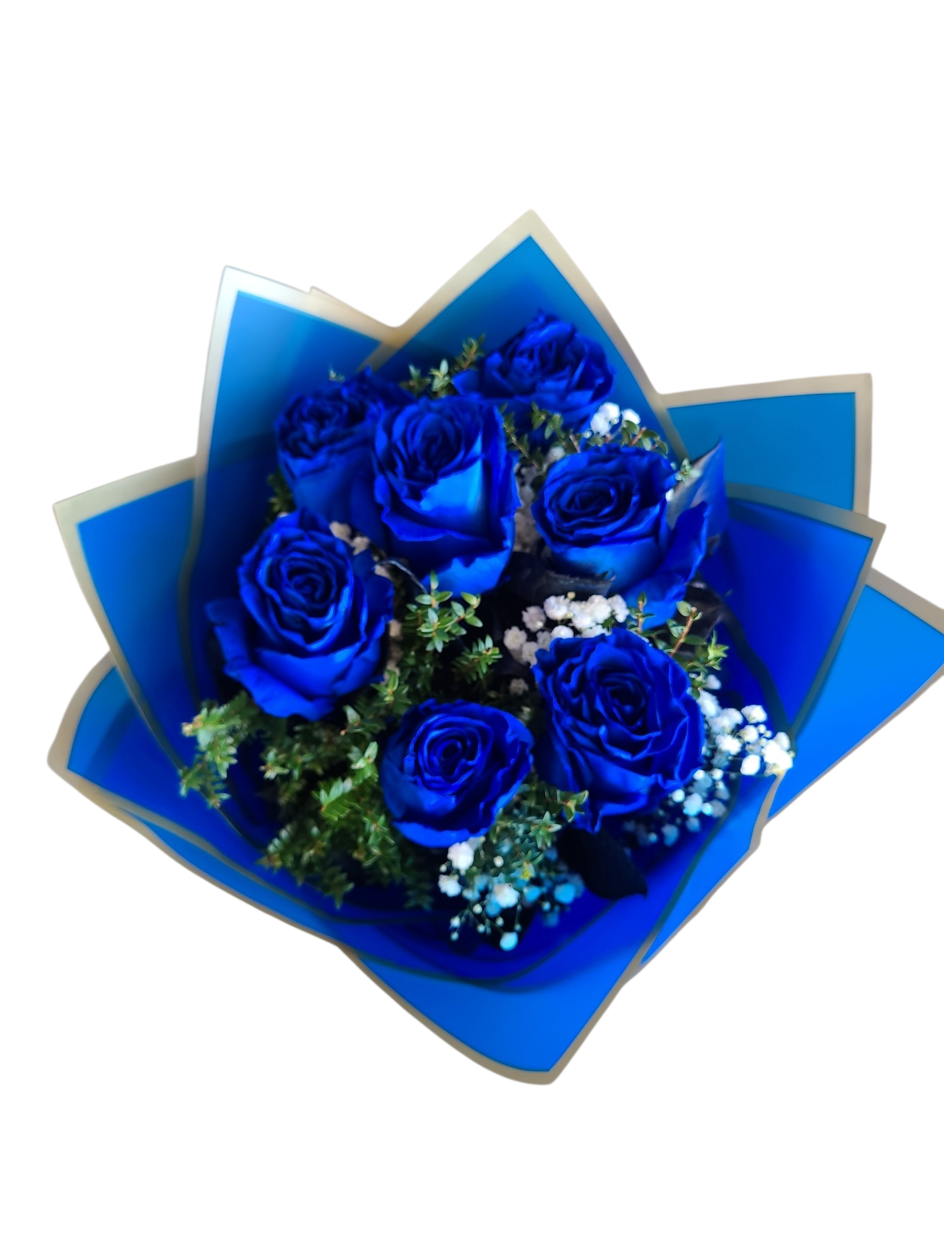 Hermoso ramo de mano con 7 girasoles + follaje verde y blanco